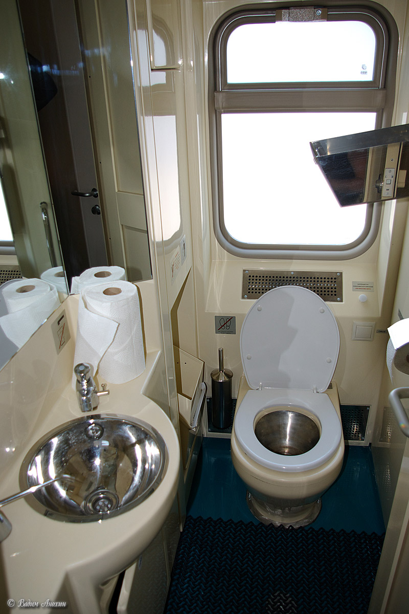 Один из двух рядом расположенных санузлов купейного вагона поезда класса "премиум" Ростов - Москва - Екатеринбург